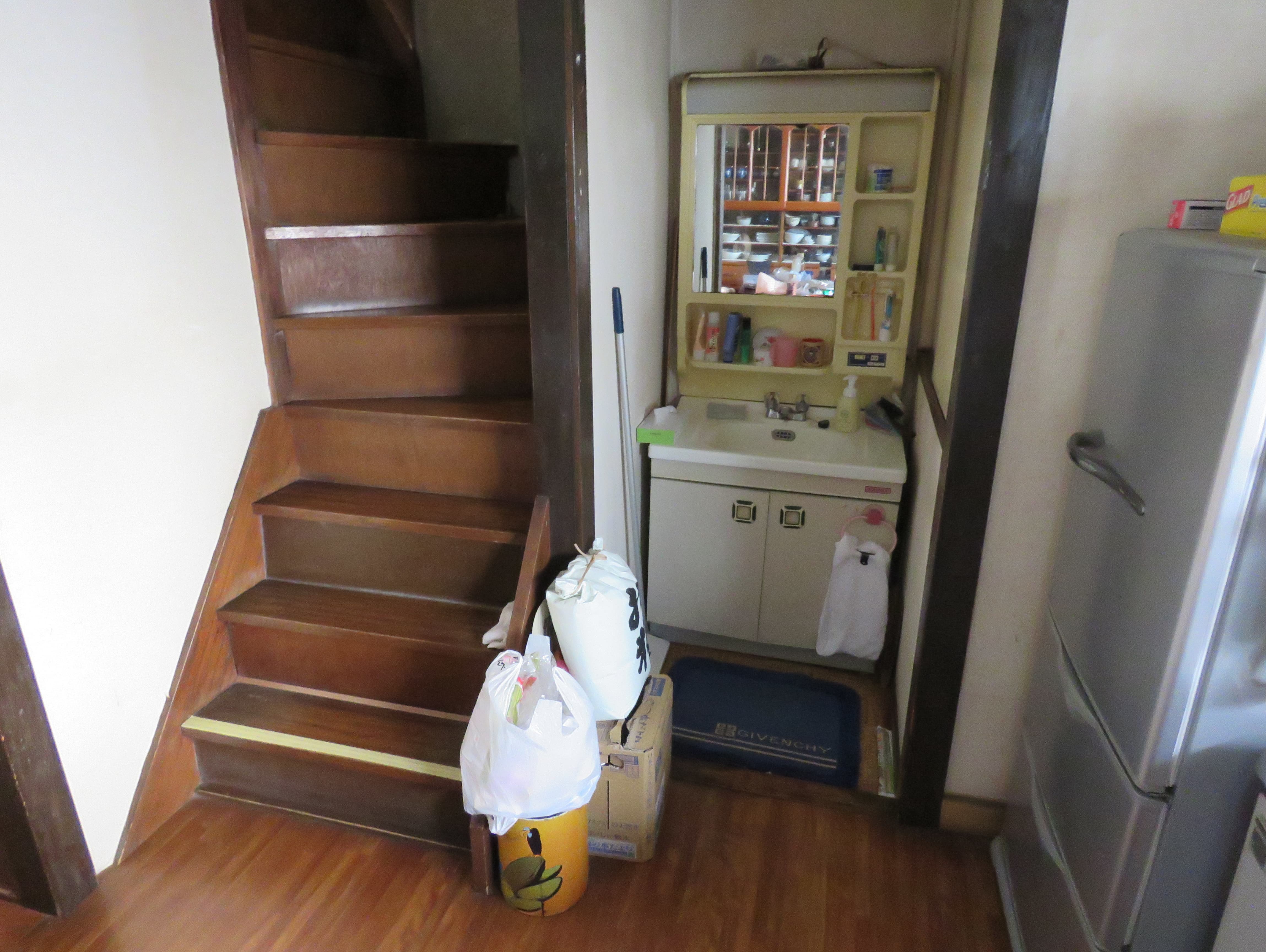 洗面施工前(階段わきに洗面台があった)